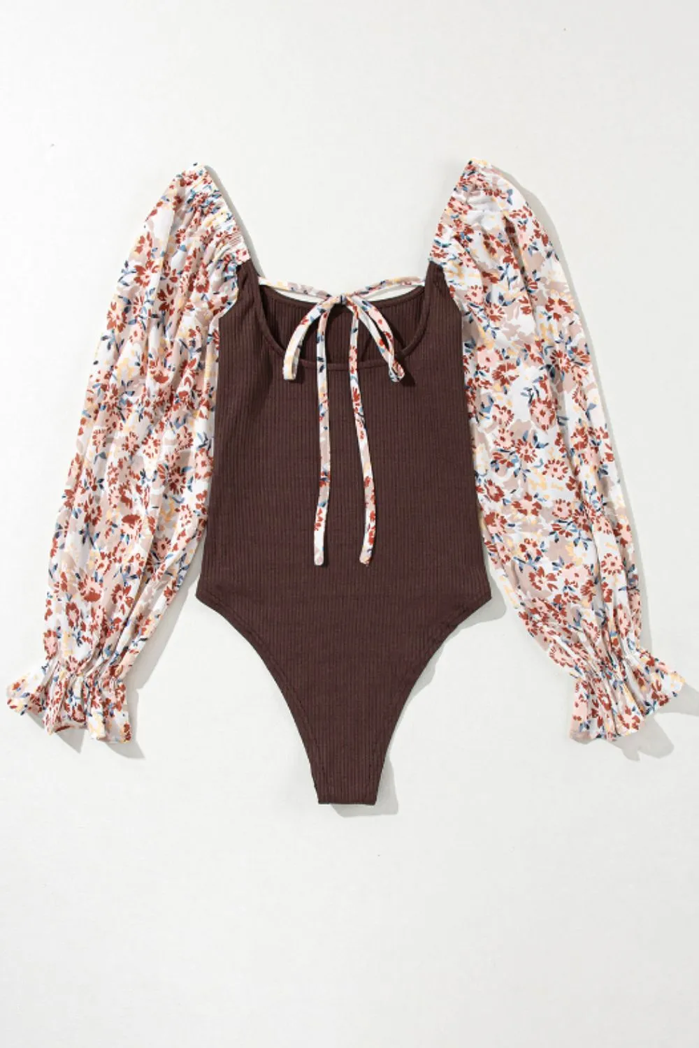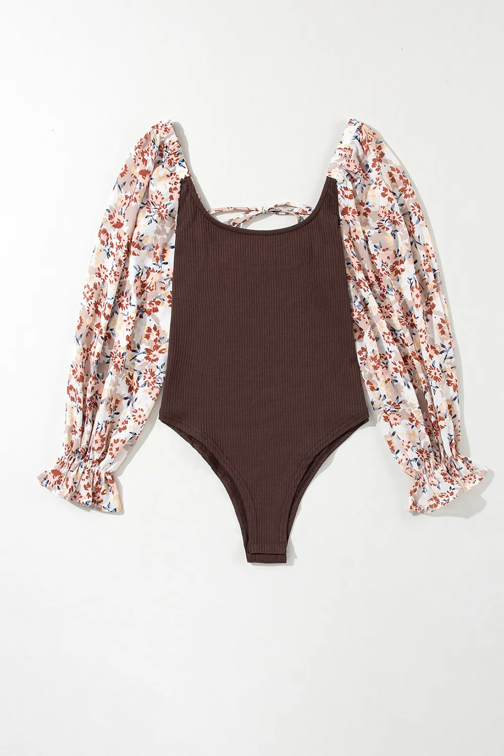 Scoop Neck Printed Flounce Sleeve Bodysuit