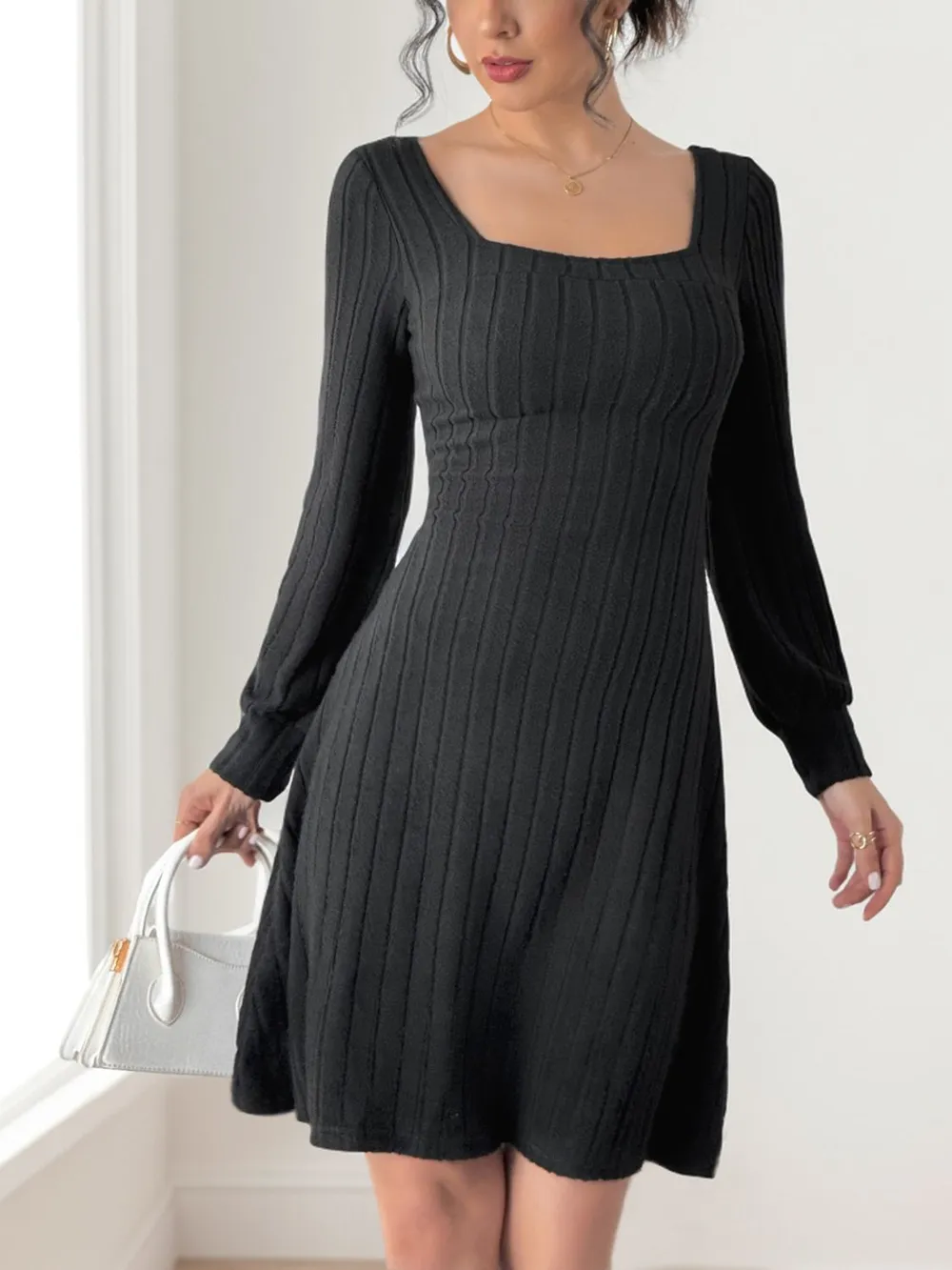 Perfee Butterfly Square Neck Long Sleeve Dress