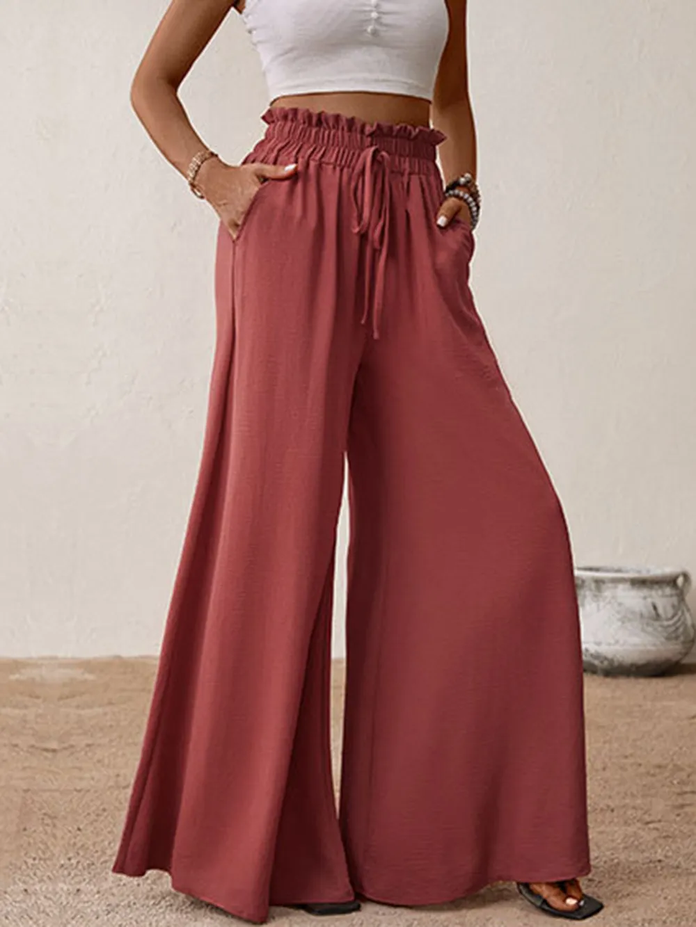 Perfee Frill Tied Wide Leg Pants