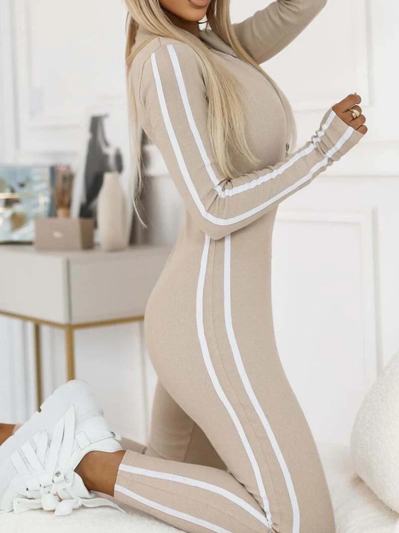 Full Size Stripe Zip-Front Long Sleeve Jumpsuit Plus Size