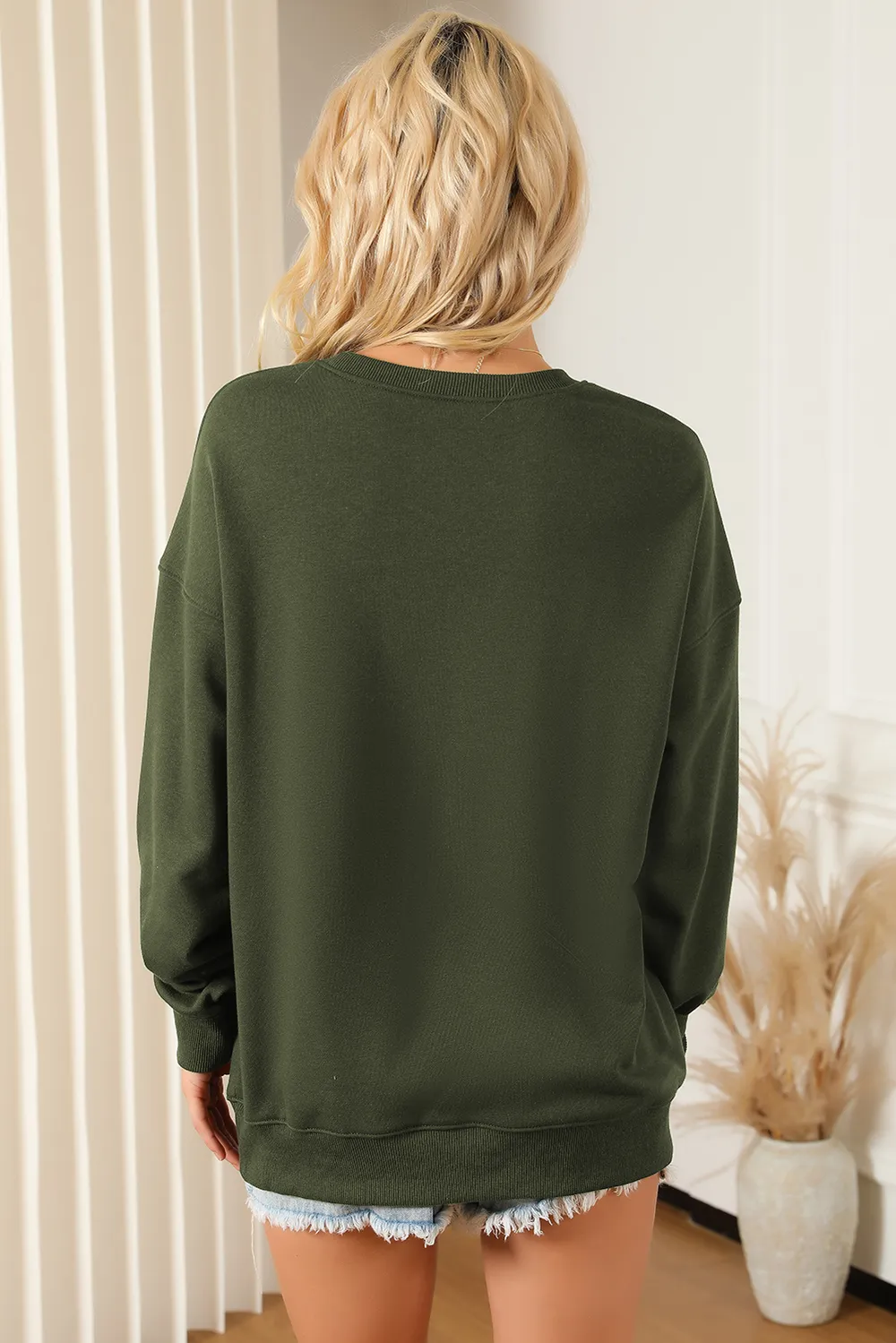 Pocketed Round Neck Dropped Shoulder Sweatshirt