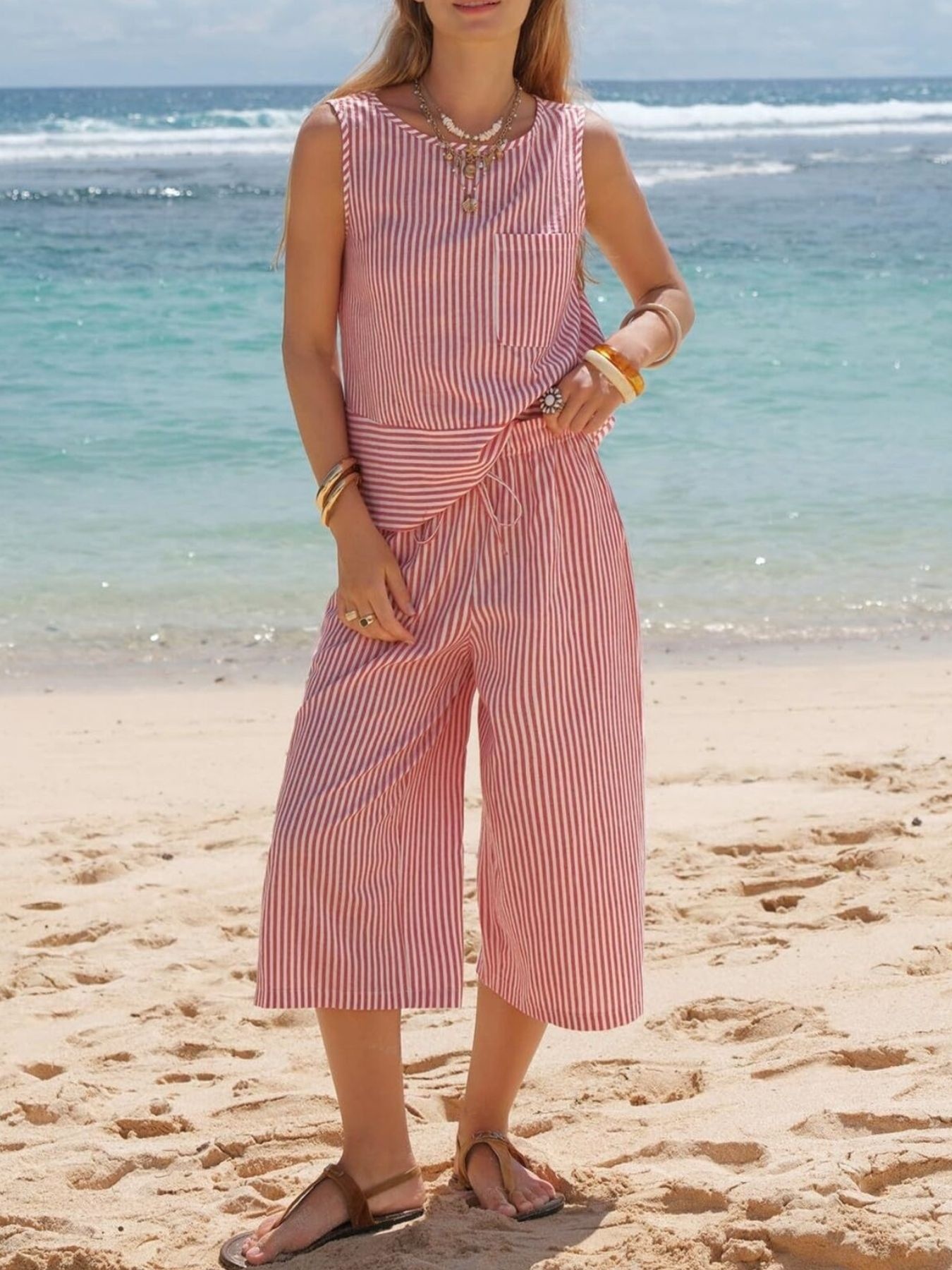 Striped Sleeveless Top And Cropped Pants Set