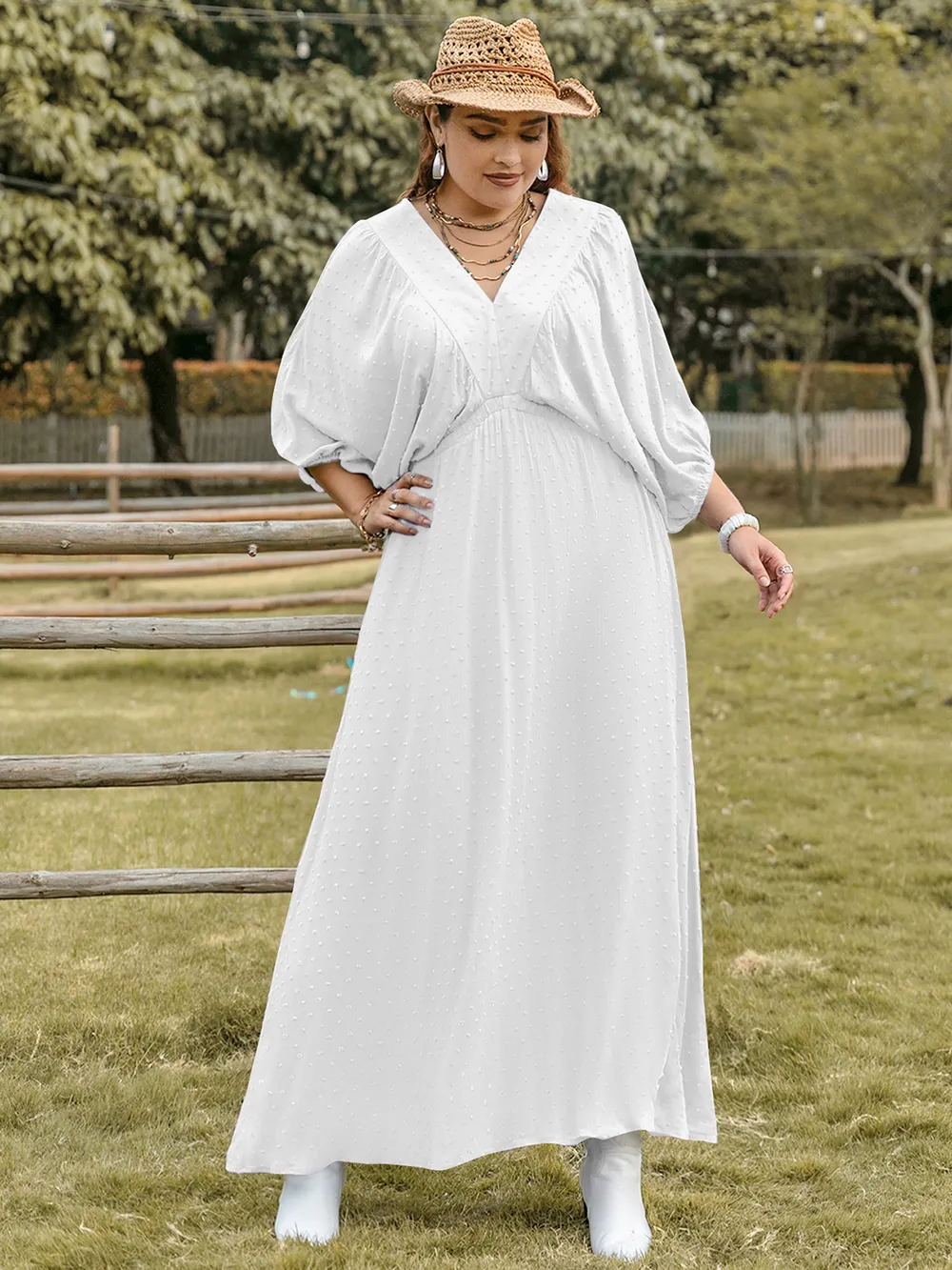 Plus Size Swiss Dot V-Neck Three-Quarter Sleeve Dress