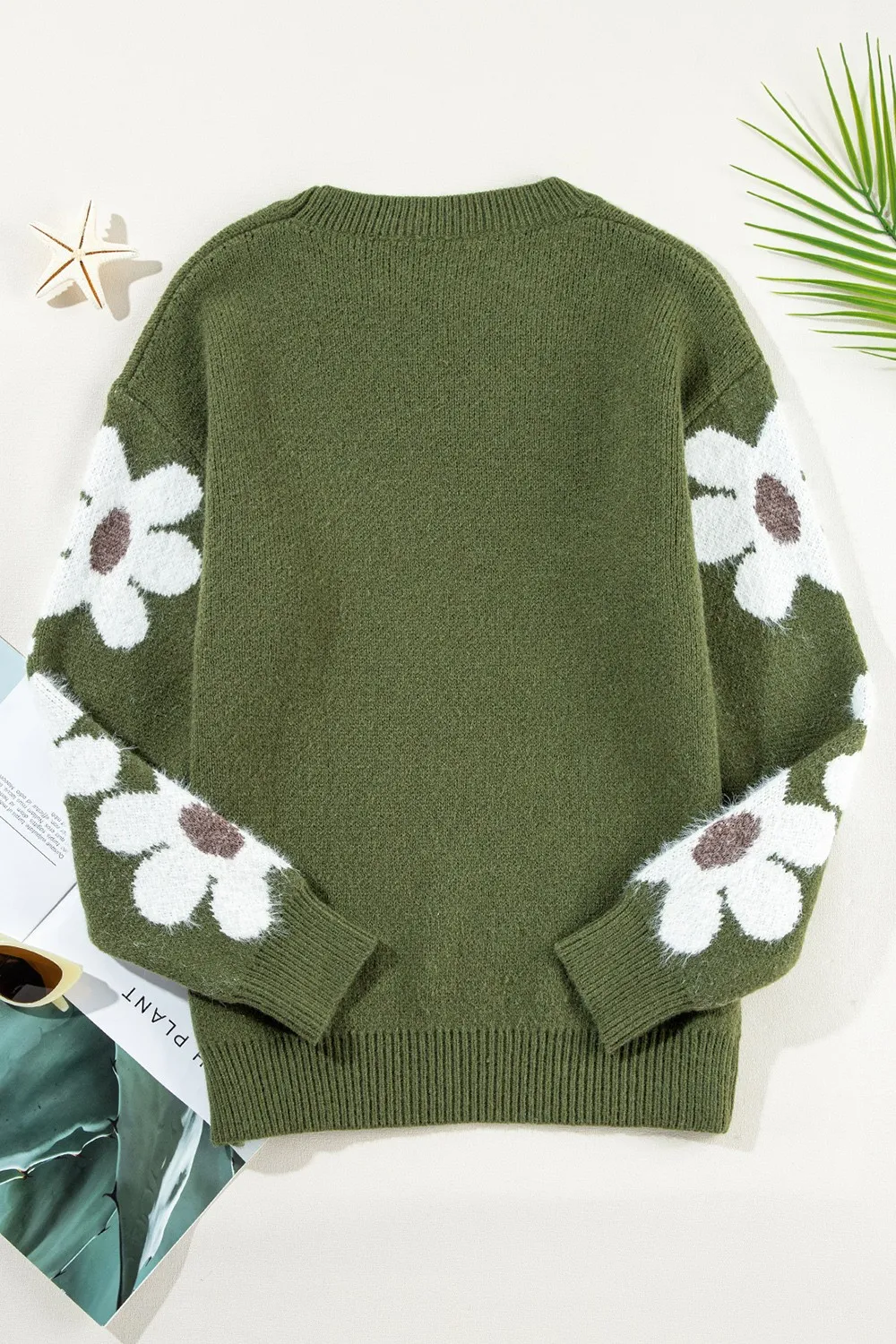 Flower Round Neck Long Sleeve Sweater