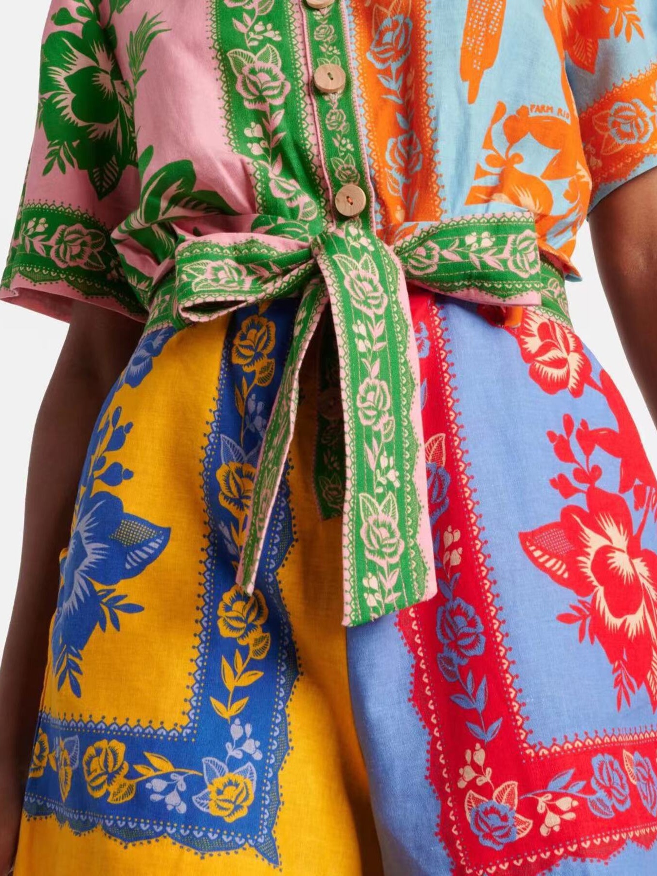 Printed Short Sleeve Tie Waist Romper