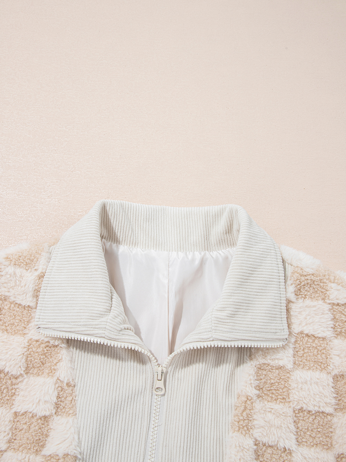 Checker Sherpa Corduroy Patchwork Zip Up Jacket